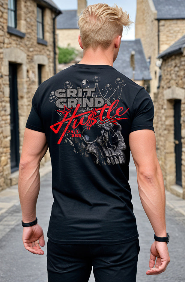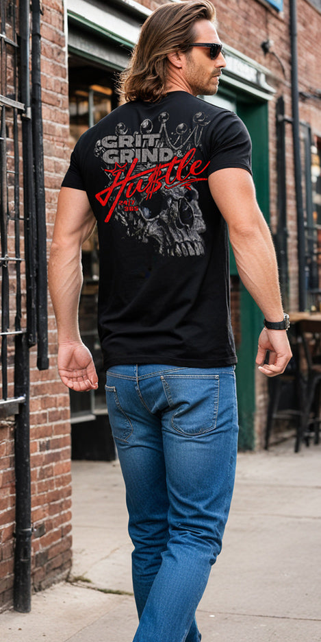 Crown above. Skull below. This is the hustle that doesn't sleep-grinding through pain, chasing that payoff. No shortcuts. No favors. Just grit, grind, and getting yours. Street-bred. Ruthless. Earned.