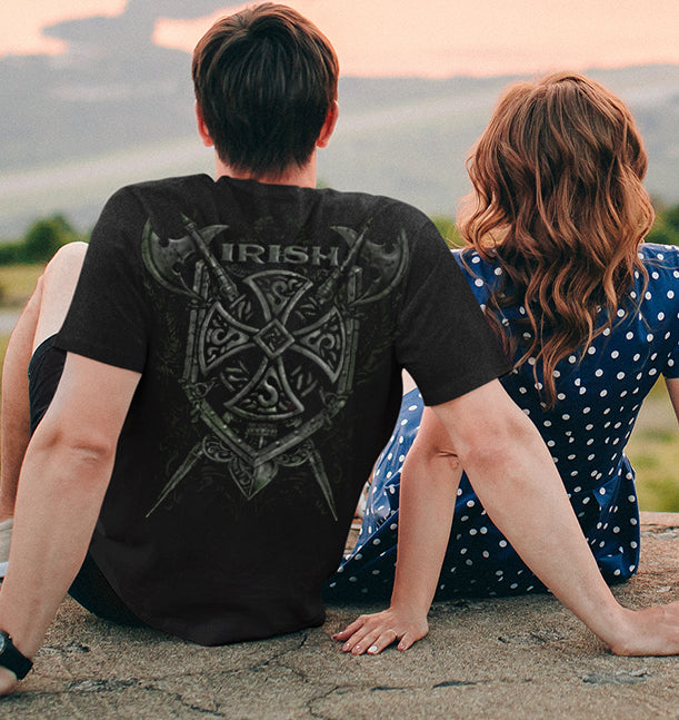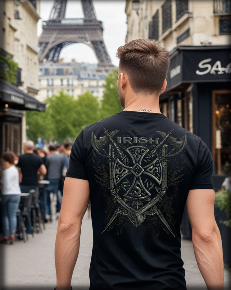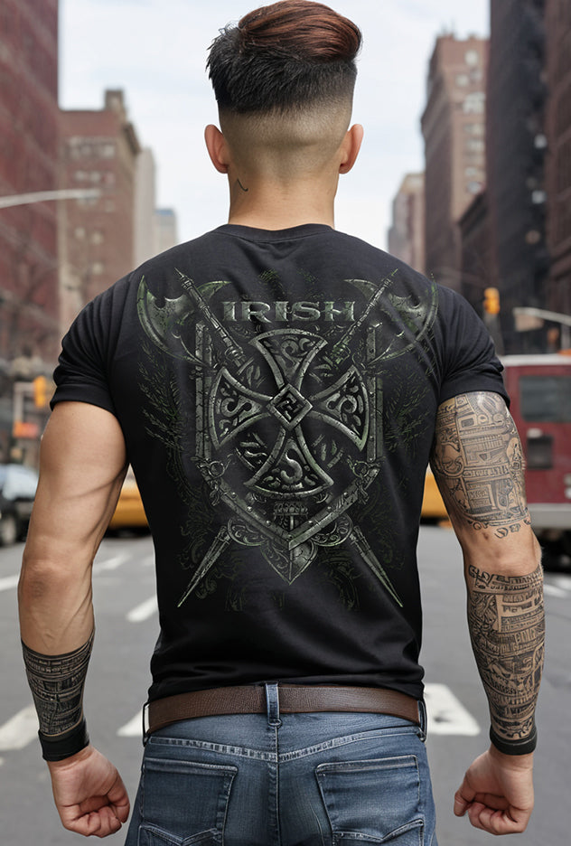 Forged with grit and tradition, this design embodies the warrior spirit of Irish heritage. Axes, armor, and a Celtic cross come together as a symbol of pride, defense, and ancestral strength. Built for those who carry the legacy and never back down.